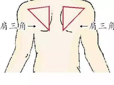 肩部金三角肩部和背部蝴蝶骨构成左右两个肩三角被三角肌包围着。