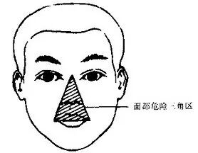 面部三角区通常指两侧口角至鼻根连线所形成三角形区域。通俗说从鼻根到两口角这个区域公认危险区域。