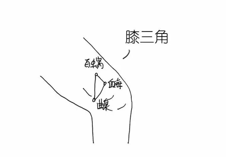 磨擦膝关节内侧三角形区域可以调节血液循环治疗气血畅造成皮肤瘙痒因下焦湿热面造成外阴瘙痒、白带异常等症状。