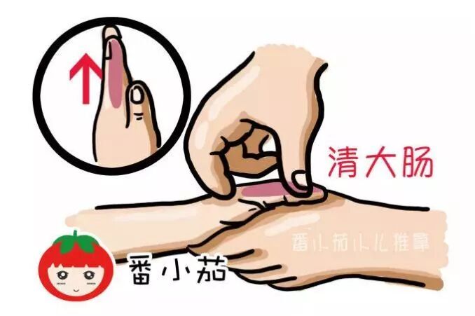 位置:宝宝食指桡侧从指根推向指尖单方向推。