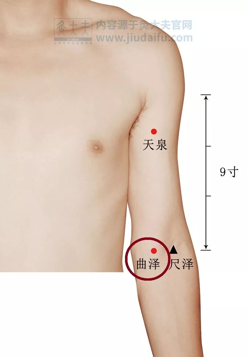 曲泽穴有降逆、镇惊、泄热、宁心作用对中暑、平时有心慌气短症状以及心肌炎、急性胃肠炎、身热、心烦、呕吐等也有很好预防和治疗作用。