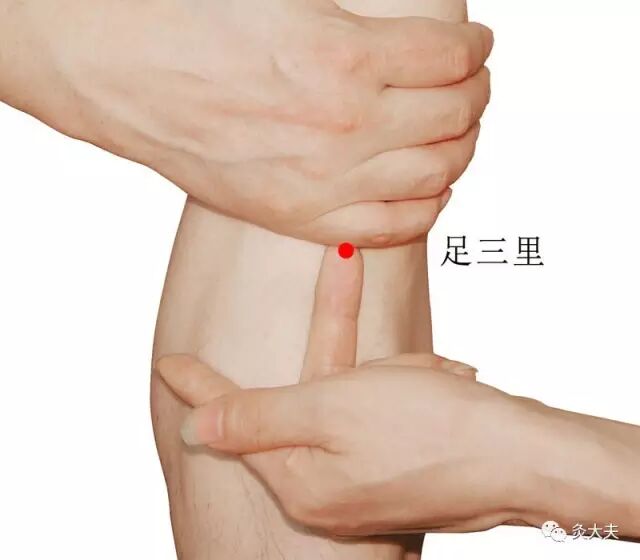 足三里穴:外膝下3寸,胫骨外侧约一横指处,用艾条灸20~30分钟或用艾针灸每次45-60分钟。