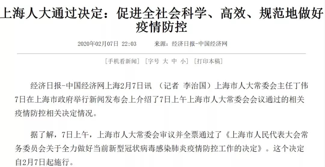 2月7日,上海市十五届人大常委会第十七次会议审议并表决通过《上海市人民代表大会常务委员会关于全力做好当前新型冠状病毒感染肺炎疫情防控工作的决定》,明确了个人有隐瞒病史、重点地区旅行史、与患者或疑似患者接触史、逃避隔离医学观察等行为,除依法严格追究相应法律责任外,有关部门还可以将其失信信息依法归集到公共信用信息平台,并采取惩戒措施。