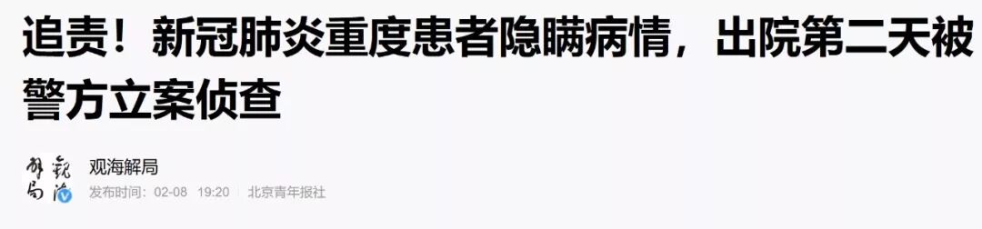 疫情出现后,媒体不完全统计下,已有超过20人故意隐瞒病情被公安介入调查。其中,甚至有医护工作人员知情不报,而后被吊销执业资格。