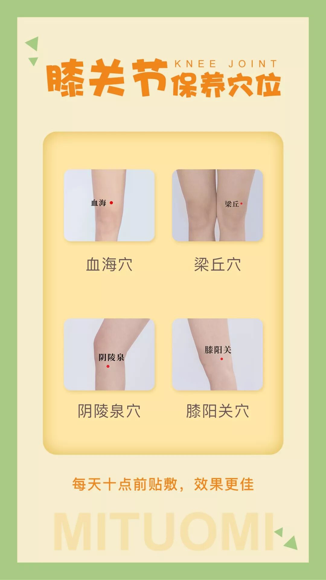 如膝关节的灸疗,选血海、梁丘、阴陵泉、膝阳关等穴,热能通过穴位进入经络直达膝关节腔,促进血液循环,修复受损组织达到调节关节炎的目的。