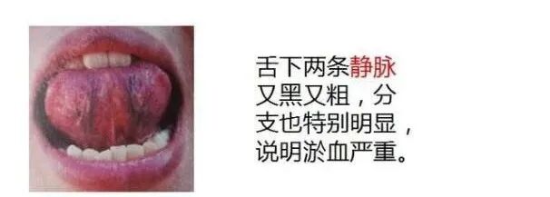 舌下出现血管粗大、血管分叉、颜色暗紫的状态时,可能是血瘀体质。
