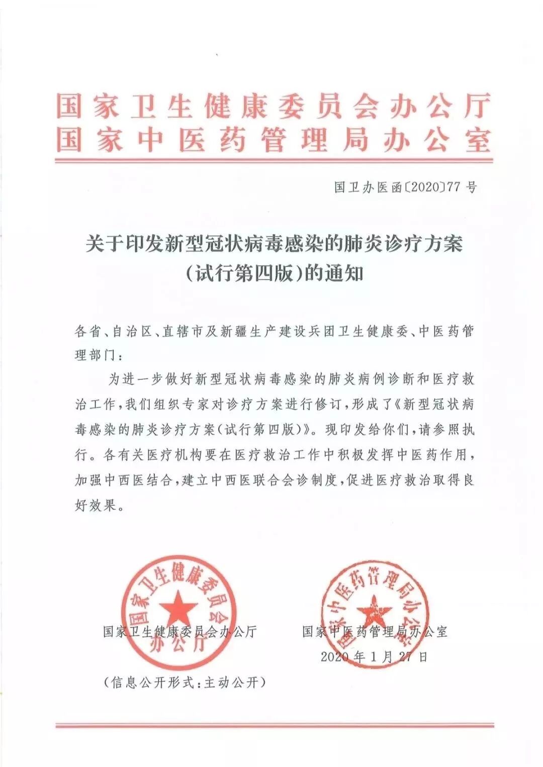 《新型冠状病毒肺炎诊疗方案(试行版)》