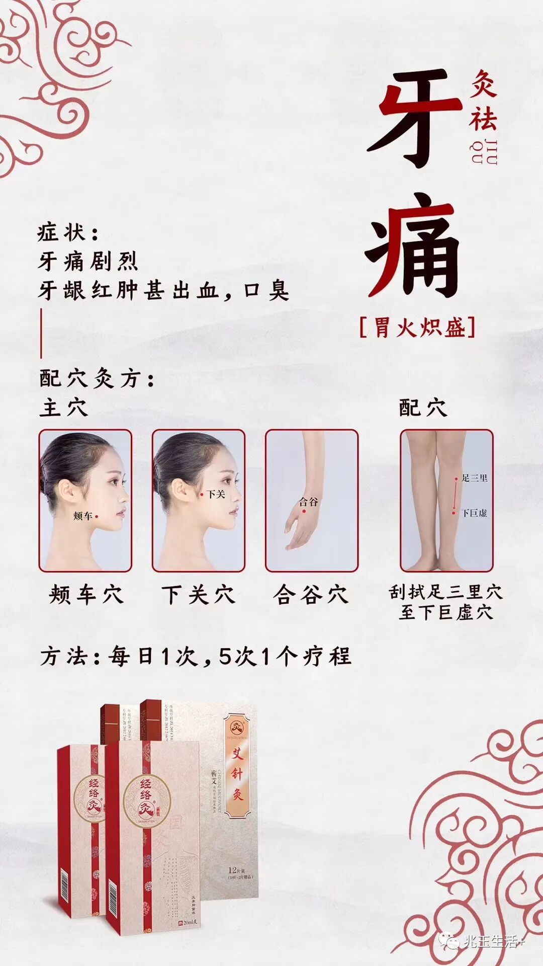 孩子牙痛,艾针灸灸痛点+合谷穴+3支益生菌。