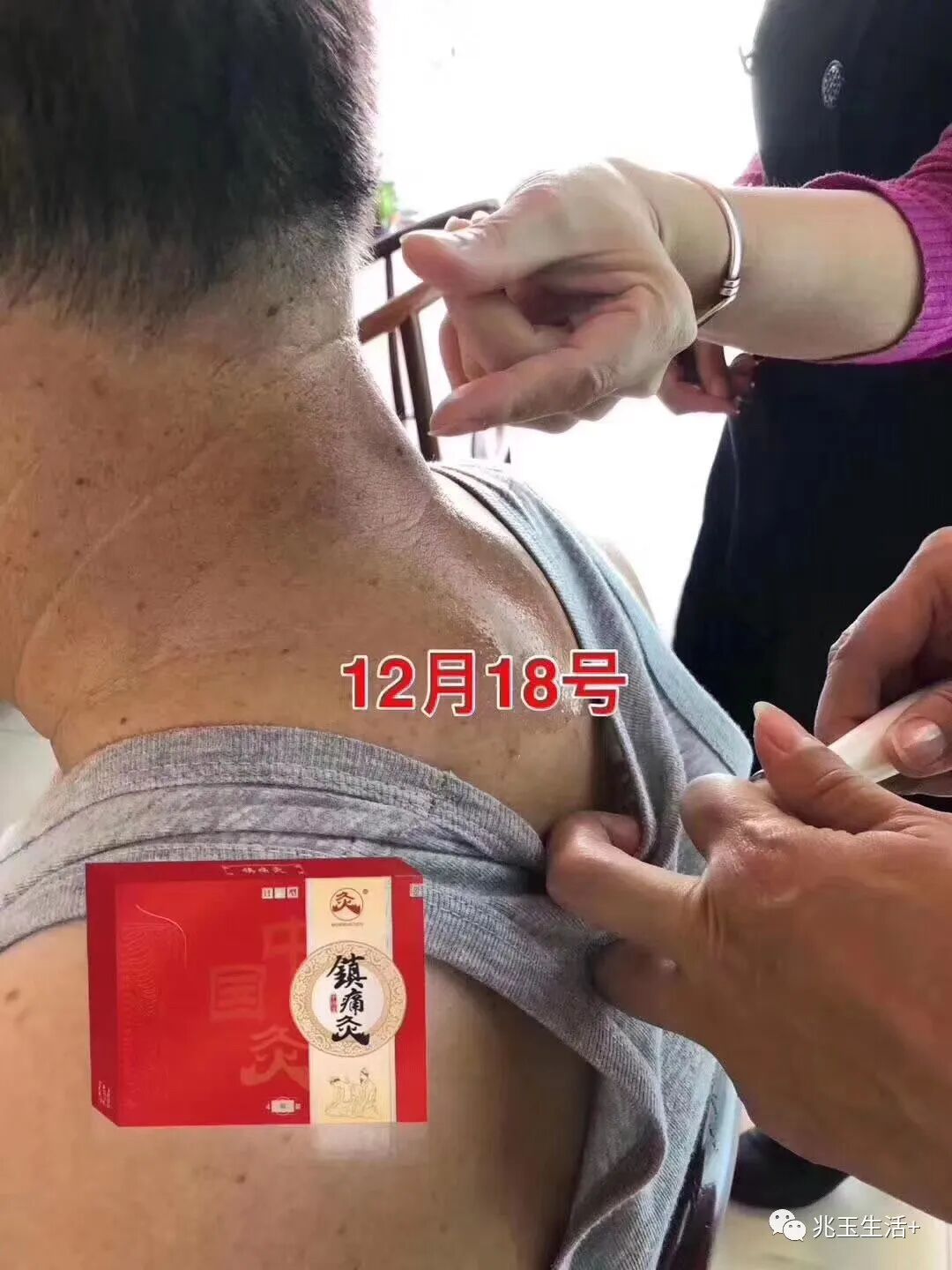 一小时或一小时半后,用镇痛灸贴于大椎穴(也就是富贵包处),4天停1天,15天为一个周期;