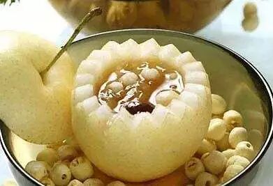 鲜梨500克、贝母末6克、白糖30克。将梨去皮剖开,去核,把贝母末及白糖填入,合起放在碗内蒸熟。早晚分食,清热化痰,散结解表,用治咳嗽或肺痈、症见胸痛、寒战、咳嗽、发热、口干、咽燥、痰黄腥臭或脓血痰等。