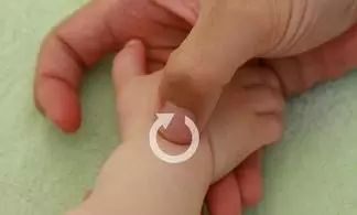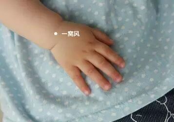 (4)揉外劳宫:术者一手持患儿四指令掌背向上,另手中指端揉穴处,揉300次。