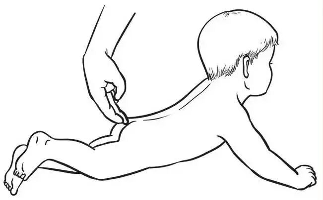 1:从尾椎开始拇指往下压,食指、中指在上