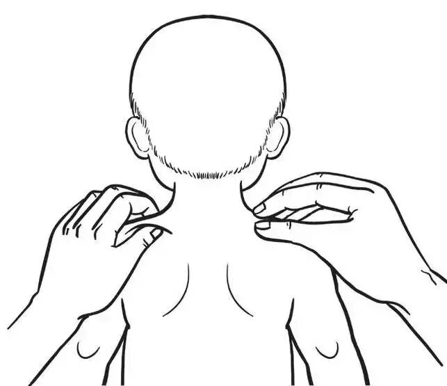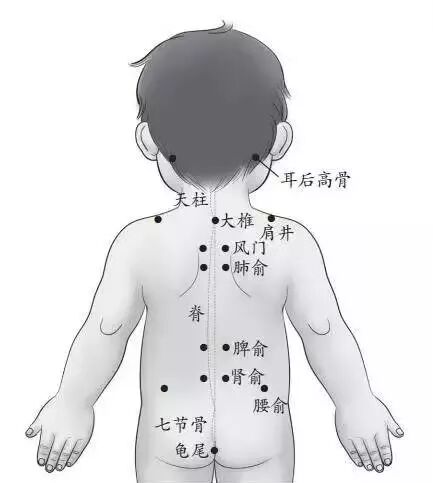 父母双手拇指与食指并拢,从孩子的尾椎骨沿脊柱两侧向上捏,连皮带肉用力捏起即放下,捏至颈部发际处为止,以脊柱两侧皮肤微有潮红为有效。从尾椎骨捏到颈椎为补法,从颈椎向下捏到尾椎穴为清法,每天可捏一到两次,每次捏5~10遍。
