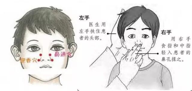 另外一个是揉双合谷穴,哪个鼻孔堵塞就多揉对侧合谷穴。