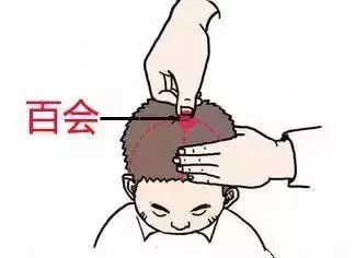 百会穴位于头顶正中心,在两耳角直上与眉心向后的连线的交叉点。家长每天按揉孩子的百会穴20~50次,可振奋阳气、扶正祛邪、清利头目。