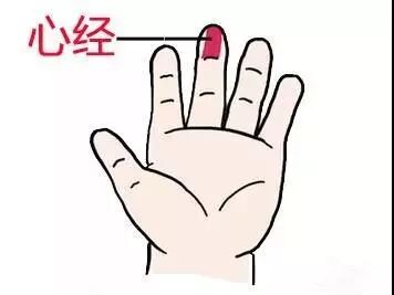 清心经:从中指最后一个指节横纹处推向指尖,快速轻推100次。