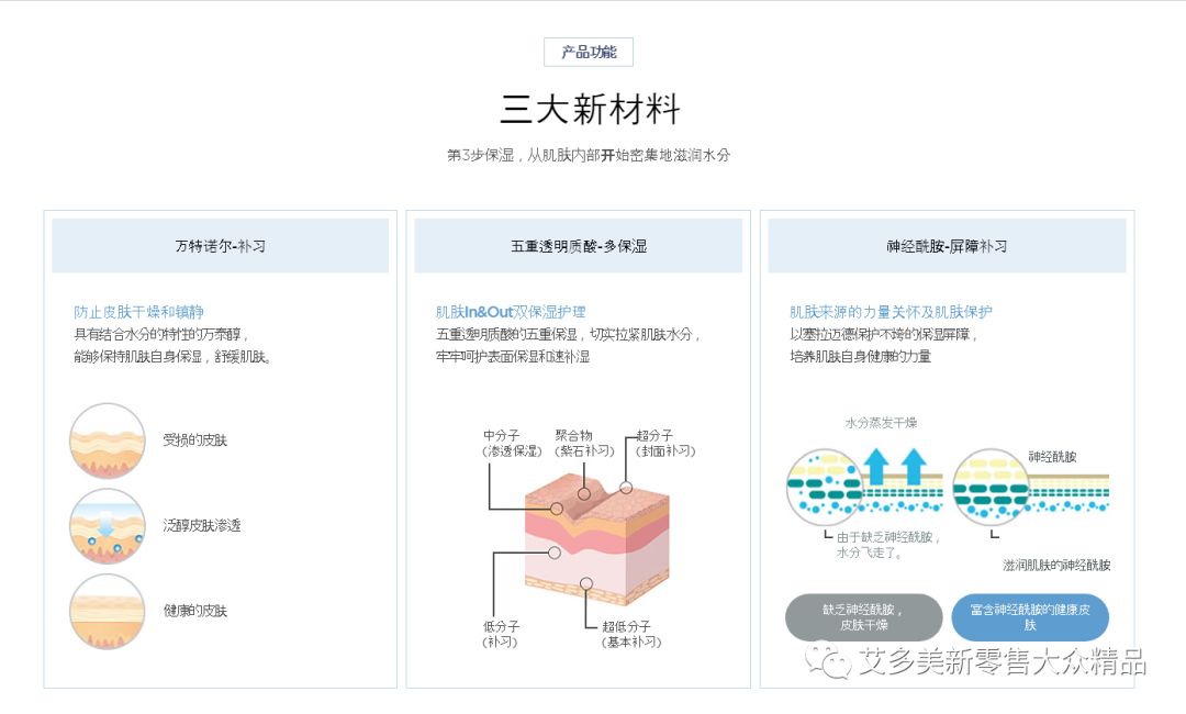 结果,将上市时的5种成分增加到6种,2016年将135ml的爽肤水增加到150ml,33ml的眼霜增加到40ml。