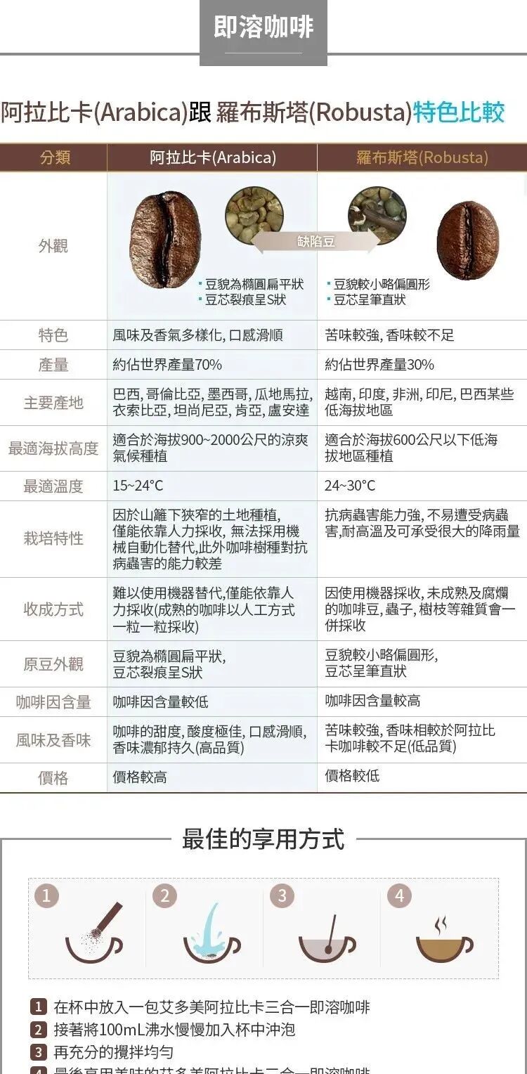 艾多美阿拉比卡即溶黑咖啡,咖啡界的貴族,获得七位咖啡师认证,滑顺触感及香浓风味,完全符合大众口味!