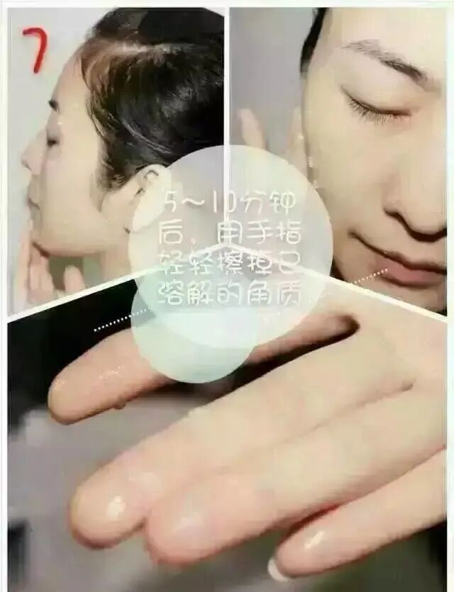 干性皮肤,把产品均匀涂抹于脸部(避开眼部和嘴周围),待产品在面部保持3-5分钟,再轻轻打圈揉搓死皮。