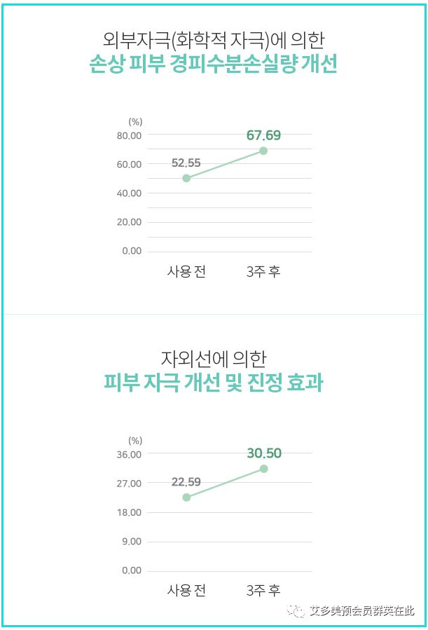 可见因外部影响受刺激的肌肤 (包括化学性刺激的肌肤) 表皮受损分子逐步改善,从而减少刺激达到了镇定效果。如上图所示。