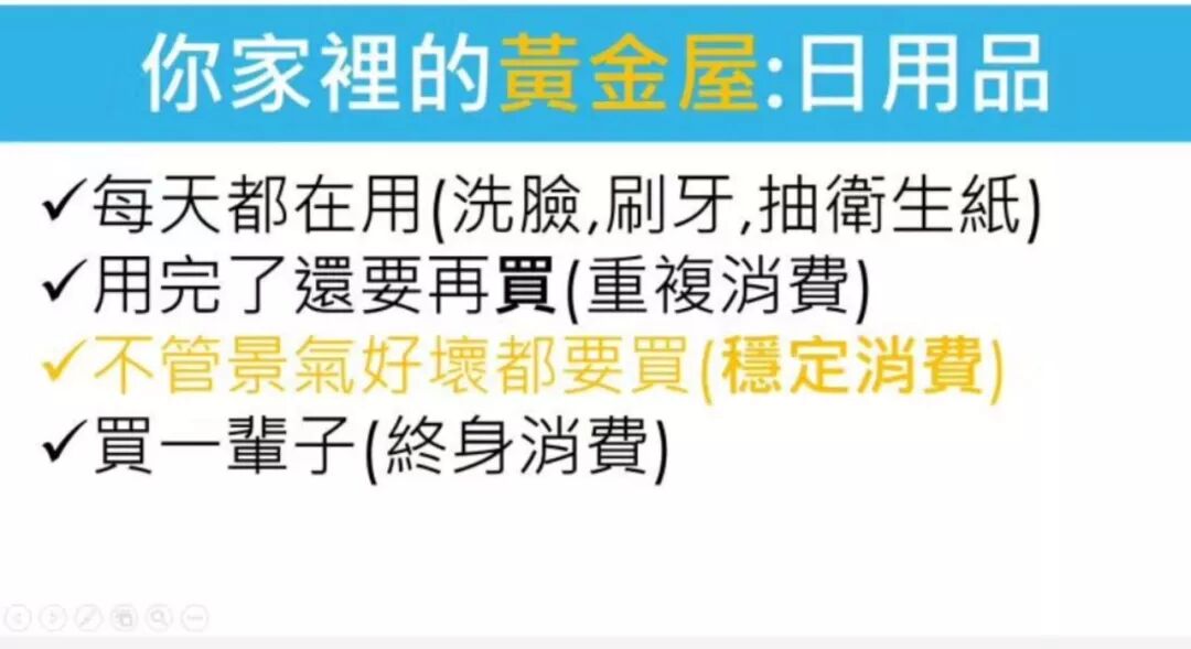 无论你是谁,天天都要用洗衣、洗碗、洗澡、洗脸的东西,女人们还要美容、买女性用品,亚健康的还想保健……对吧?
