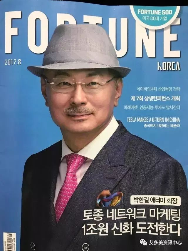 这是艾多美董事长朴韩吉2017年8月成为《财富》杂志封面人物后,再一次成为封面焦点人物。