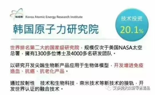 百年代工企业科玛公司和国家级的科研机构韩国原子力研究院强强联合,为艾多美公司产品能够做到物美价廉创造了条件。