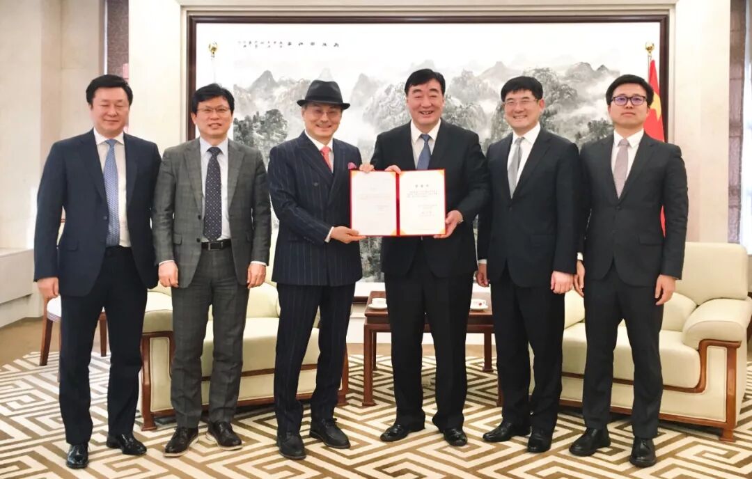 2月19日,邢海明大使会见韩国艾多美株式会社朴韩吉会长。