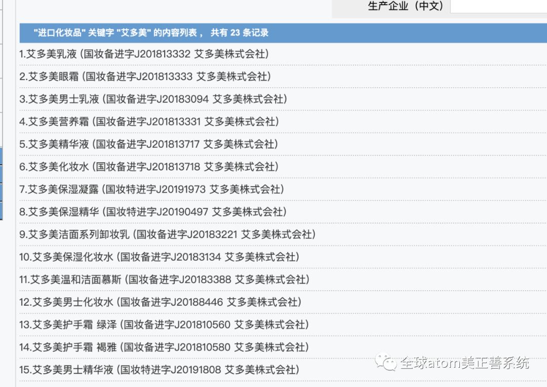 之前国家药品监督管理局官网查询艾多美的化妆品数量是14条.而现在查询增加为是23条.可以看到艾多美的化妆品正在陆续通过备案.