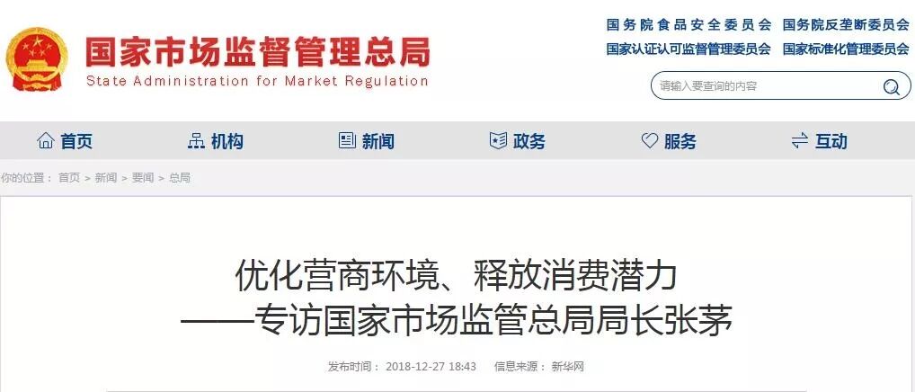 去年,国家市场监督管理总局发布了《优化营商环境、释放消费潜力——专访国家市场监管总局局长张茅》的文件,该文件明确指出要针对市场环境中影响消费者信心的薄弱环节,加强监管!以达到产品和服务质量的提升,最终促进大众创业,万众创新!