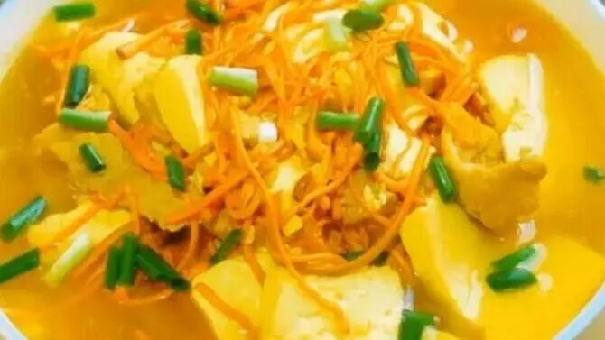 虫草花5克、嫩豆腐2块、瘦肉30克、高汤1碗、青葱数根、麻油(可不加)、蚝油、盐、生抽、红薯粉、料酒、胡椒粉、味精或鸡精或不加