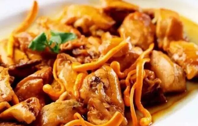 白条鸡1只,虫草花6克,各种佐料调之,清炖,食之。