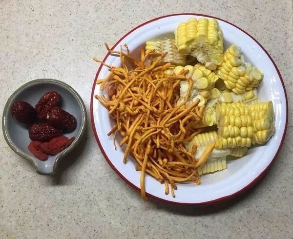 4.虫草花,枸杞洗净,红枣去核,玉米切块。