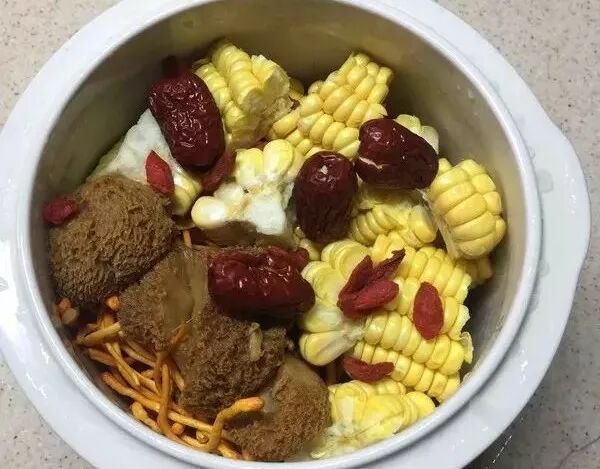 主料:头菇1个、草花100克、骨400克、枣4颗、枸杞2克、玉米1个