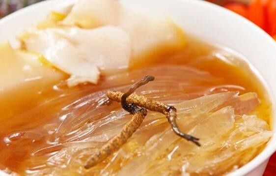 功效:由于水鱼裙腿营养丰富,加之冬虫夏草具有补肾益精、益肺止喘之药效,故此菜对病后体虚、头晕、厌食者非常有益。