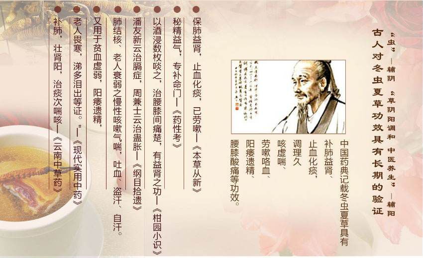 冬虫夏草自古便是中华三大滋补品之一,它具有提高免疫力,补肾益肺,防癌抗癌等强大滋补作用,尤其是在预防疾病,病后体虚休养上,滋补效果显著!