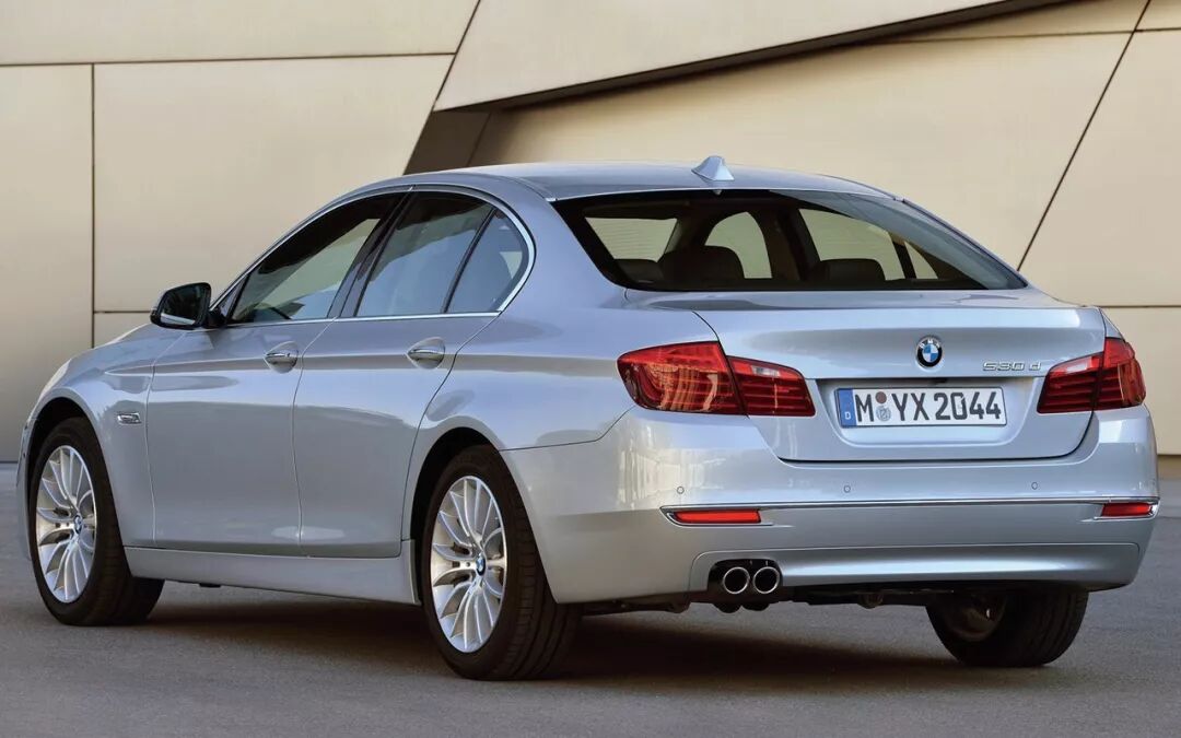 我们今天为大家介绍的2013款宝马5系也就是宝马F10的中期改款车型,外观方面它的车头采用了近似当年7系的设计轮廓,原本锐利的头灯线条,在这一代修改得较为圆润一些,但仍不失运动房车应有的气息。LED环状行车灯也为5系列增添了完整的家族特色。其实这一代5系的关键词就是“加长”,所以在尺寸上必定能给我们惊喜,相比更早一代的5系,这一代5系的轴距加长了140mm,并且车长达到了5039mm,这个尺寸在中大型车级别里已经算是佼佼者了,并且已经超越了同时期的A6L以及当年加长之后的奔驰E级。