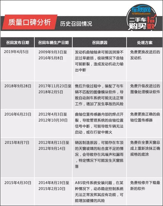 国内共有5次召回记录 第四代车型存在曲轴断裂的可能