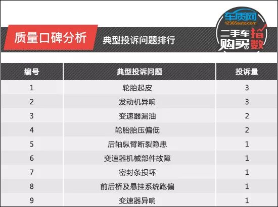 消费者在选择二手车时往往会忽视“原车制造质量”因素,但实际上这是在选择二手车时一项非常重要的指标。为此,车质网基于大量真实车主投诉,通过专业数据分析,对路虎发现产品进行质量评估,从中找出可能存在的批次性质量缺陷,为消费者提供更为直接有效的参考信息。