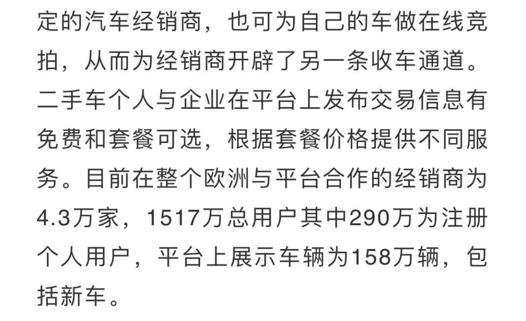 Autoscout24成立于1998年,为Mobile.de最大竞争对手,每月发布一份德国二手车价格指数报告,在欧洲与其合作经销商为5.5万,每月超过5000万使用人数,平台上展示车辆118万辆二手车包括新车与商用车。私人车辆交易可选择免费和支付基本服务两种,为私人交易提供免费交易在线市场,提供信息发布服务,基本服务费可保证个人车主在三个工作日内将车辆销售给平台注册经销商。