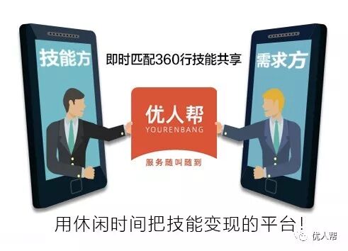 您都可以在优人帮技能服务平台把你的技能变现,时间变现,经验变现。所以,在这些技能服务者可以赚取自己幸苦费的同时,百姓也得到了很多的方便。