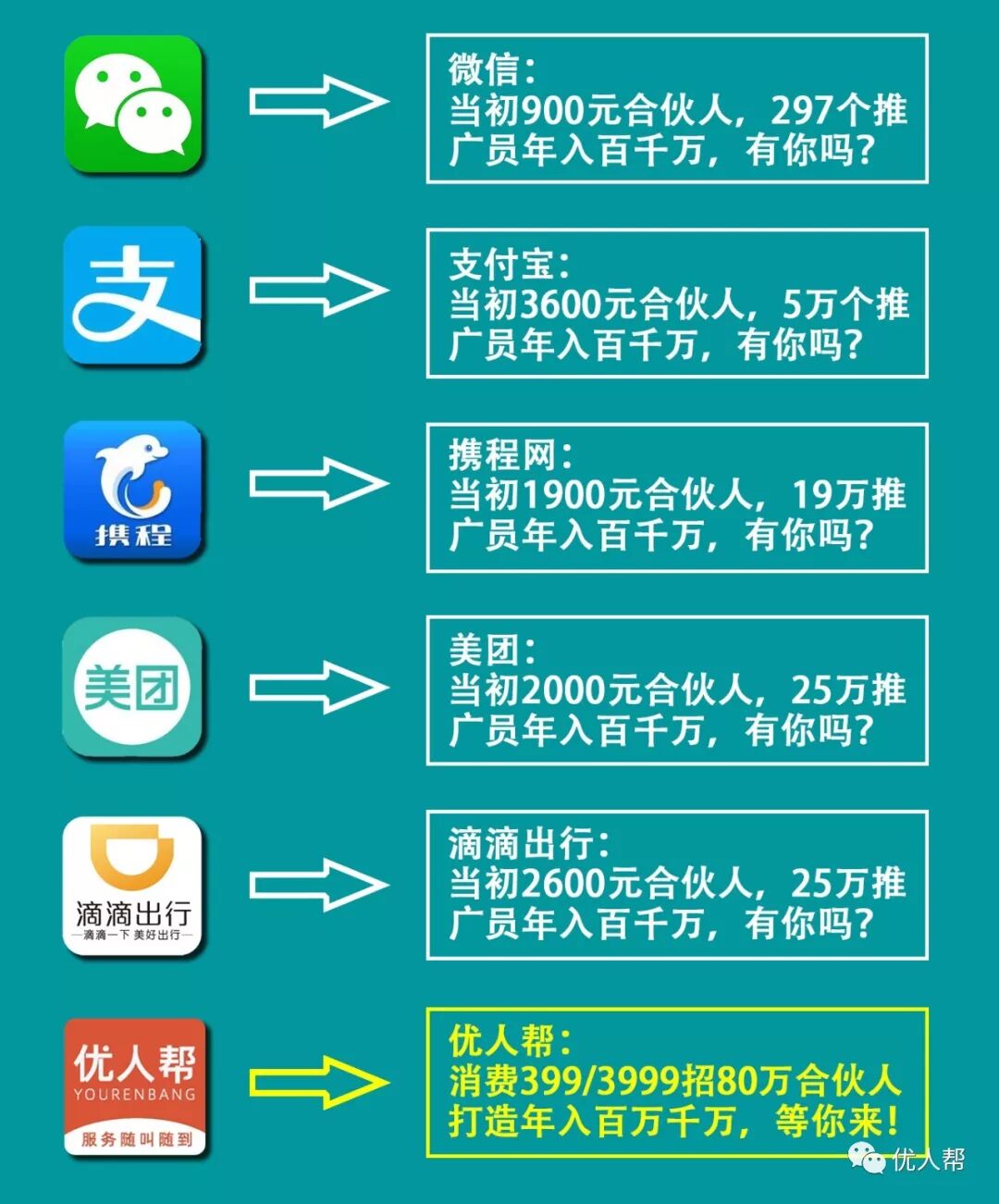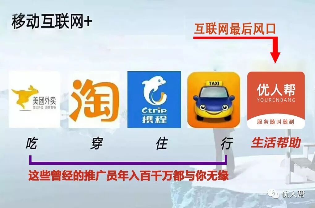 选择了优人帮就等于选择了当年的淘宝、携程网、微信、滴滴打车一样,