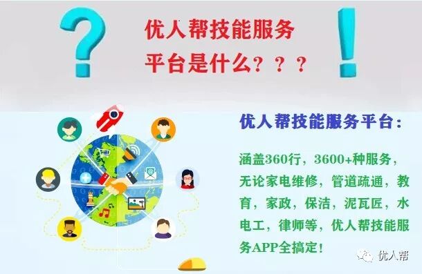 涵盖360种行业、3600+种服务,无论家电维修、教育、家政、保洁、泥瓦匠、水电工、律师等,优人帮技能服务平台全搞定。