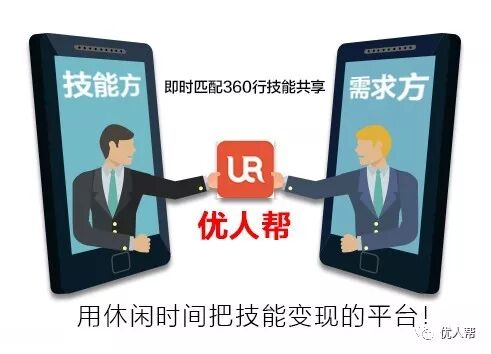 【优人帮】技能共享服务平台将改变人们的“工作方式”和"生活习惯",让你足不出户,手机随叫随到天下服务,解决你一切供需!不卖货、不发货、不存货、无投资、无售后,享有源源不断的流水收益,构建社会信用体系!市场推广初期能赚钱、推广中期能赚钱、推广后期能赚大钱。挖掘社会所有的隐藏资源,利用碎片时间将其变现。