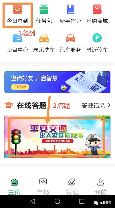 在线答题下面,点击‘平安交通 出入平安你我他 车秘交通安全知识答题’。每次5题,答对3题或以上,正确率≥60%以上,算完成任务有奖励。若正确率<60%(答错3道题以上)需要重新答5道题,直到正确率≥60%以上!今日任务完成。(我的-使用券-明细里能查看到每日签到/答题奖励)
