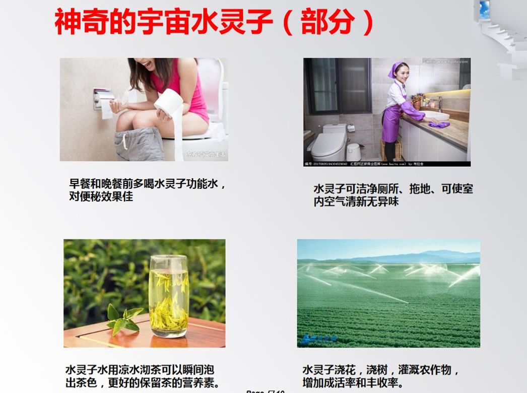 3、水灵子水是健康长寿活性水,对坚持长期使用的亚健康人群和高血压、高血糖、高血脂,高尿酸等慢性病人群有缓解症状和辅助治疗作用。