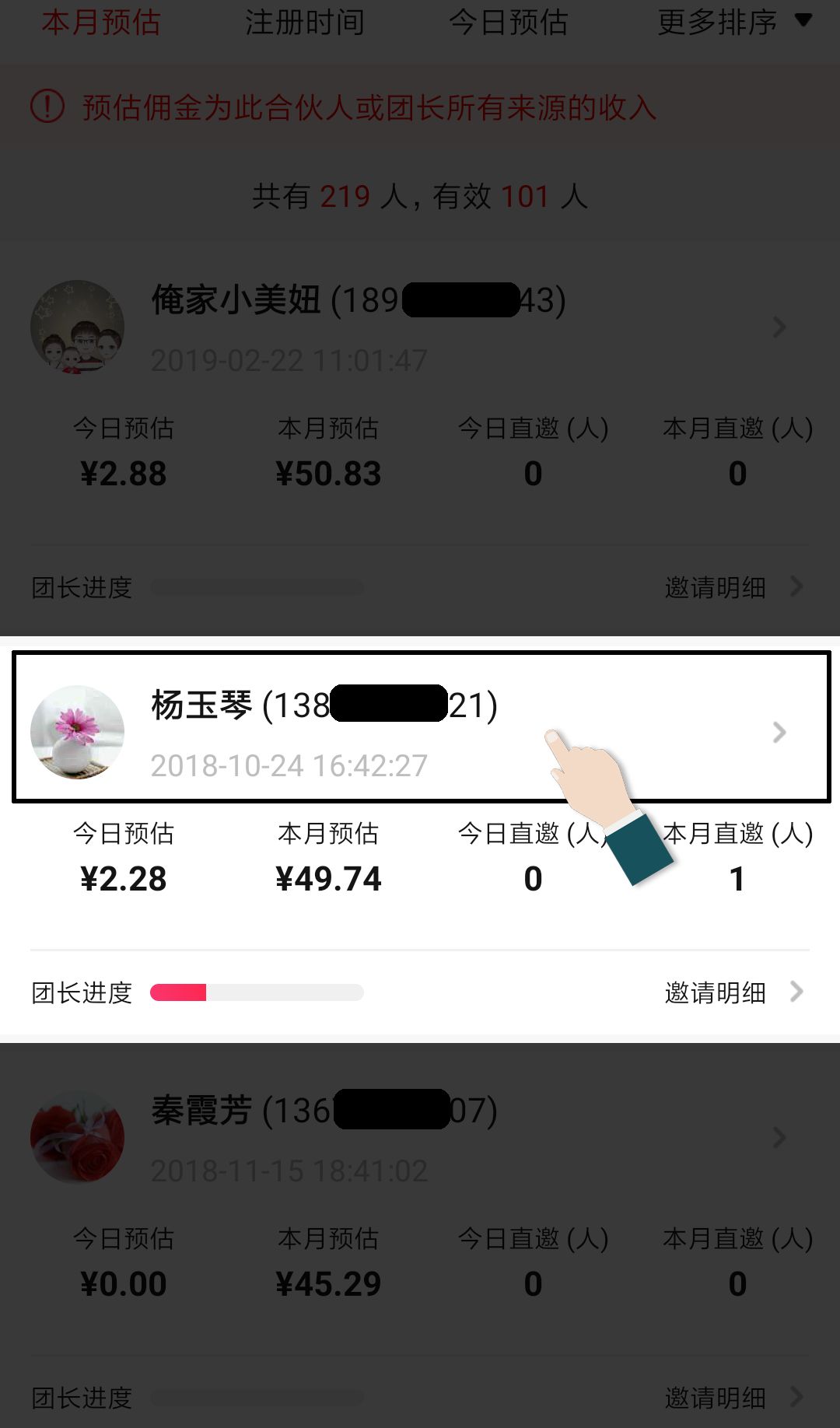今日预估:此合伙人今日自己所获得的所有收益(包括自购收入和团队带来的收益)