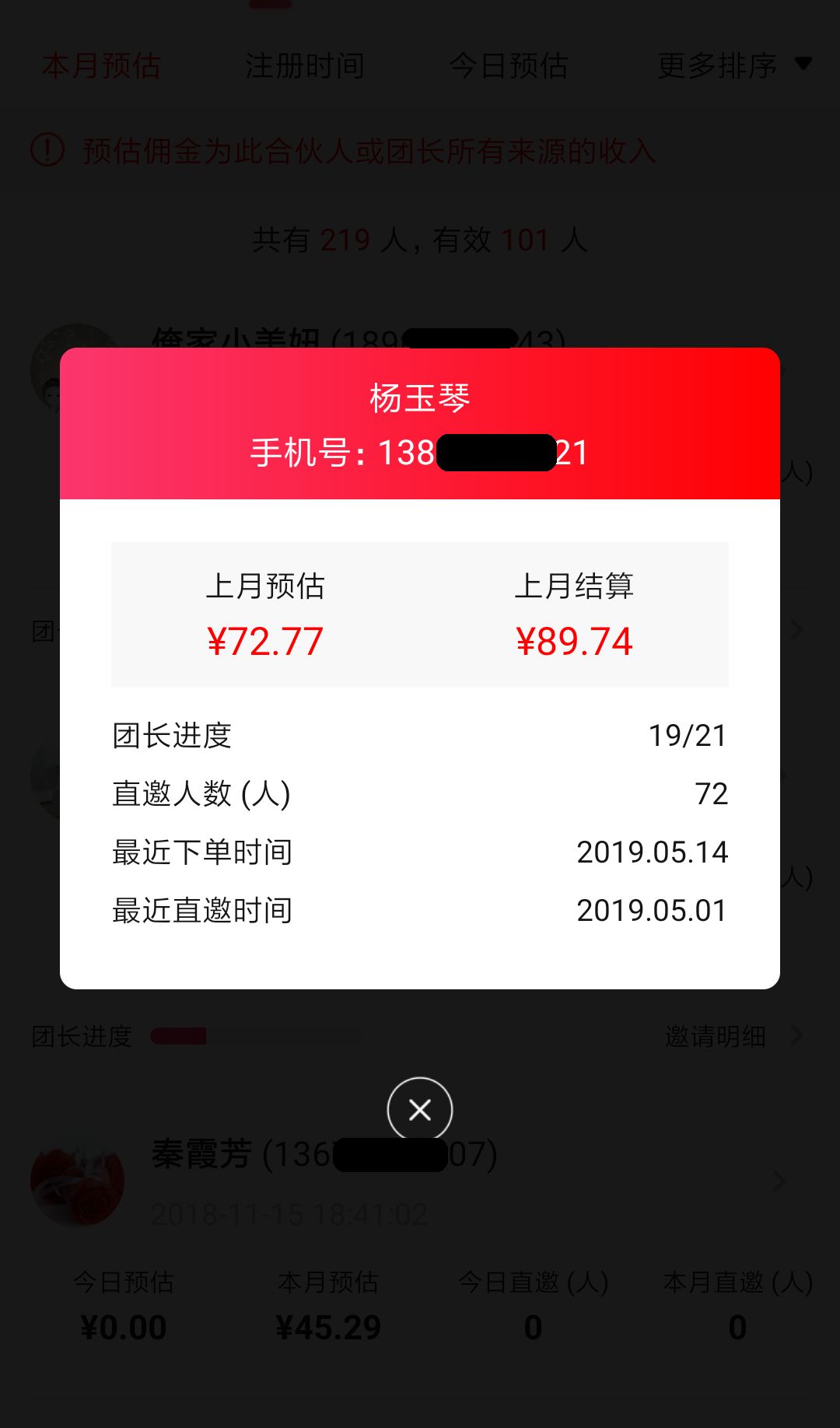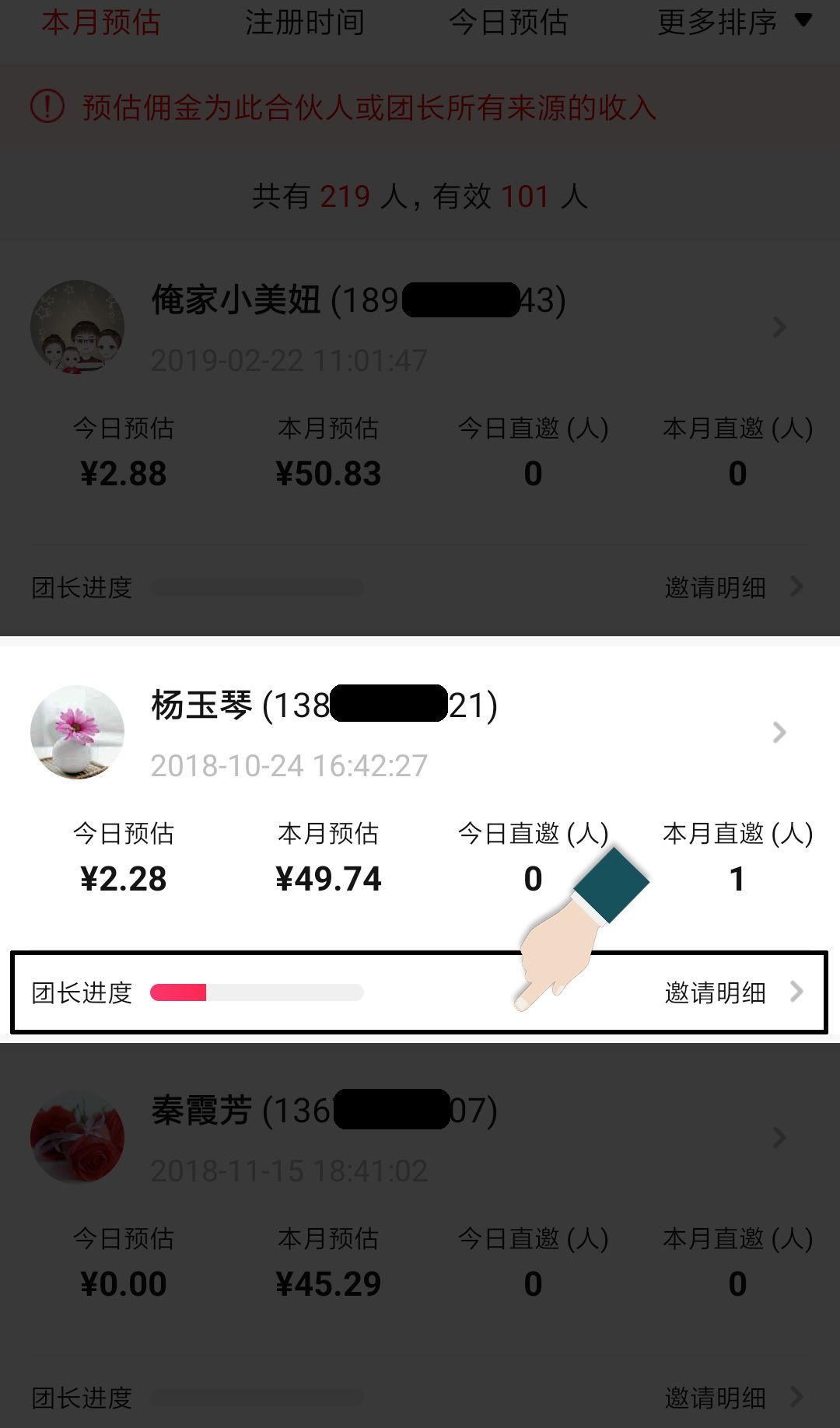 包括团队总人数、有效人数、团队中各个合伙人的详情