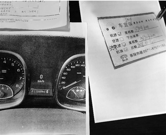 但是一周后她发现驾驶室车门旁贴有一份保养记录,显示截止到2016年11月15日,该车行驶里程为7.6万公里。也就是说,在她购车日期半年前,这辆迈锐宝的行驶里程就已经达到了7.6万公里,还不知道这半年这个数字又会增加多少。