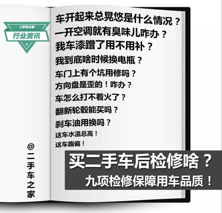 可能看完本篇文章后很多盆友都会感觉二手车检修很麻烦,但实际上这九大部分的检修不单单适用于二手车,只要您用车就会涉及到。而另一方面小编也在文章中多次提到,不是每辆车都要把这些项目挨个做一遍。每辆车的车况不同涉及到的检修项目也不尽相同。具体检修项目还需根据自身车况选择。个人建议,关于行车安全方面的检修不能含糊,而对于其它方面的检修就看您个人意愿了。